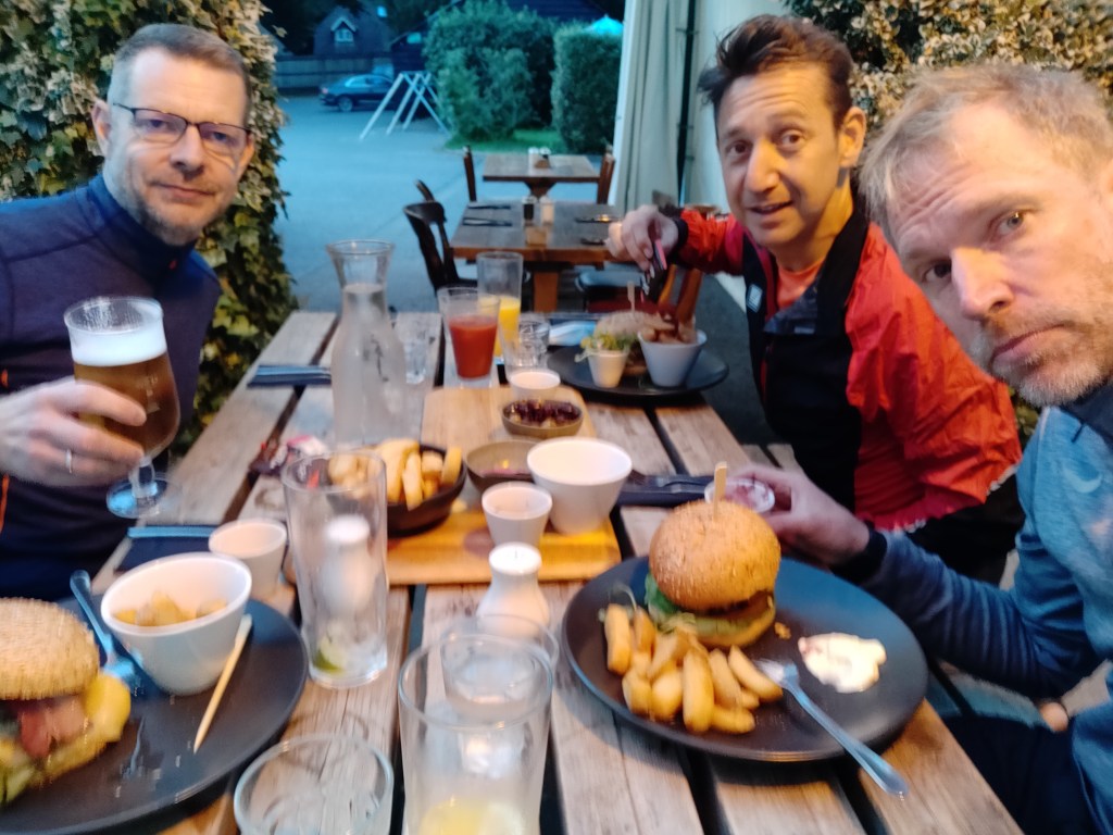 The course wound on through the Hampshire countryside, skirting Thursley and around the Devils Punchbowl, a vast countryside vista with a whopping great big dip in it, caused by a disagreement between old Satan and Thor apparently, I can’t wait for that Marvel New Testament crossover. Our first scheduled stop was in Hindhead as we ran down out of the country park and a convenient cafe stop (Cafe Twenty5). They stocked inner tubes which handily topped Rix back up (as he does love a puncture) and a fine line in coffee and hot baguettes as well as topping up all our water sacks, bottles and bags. A really nice vibe and well worth dropping in as you pass the front door.