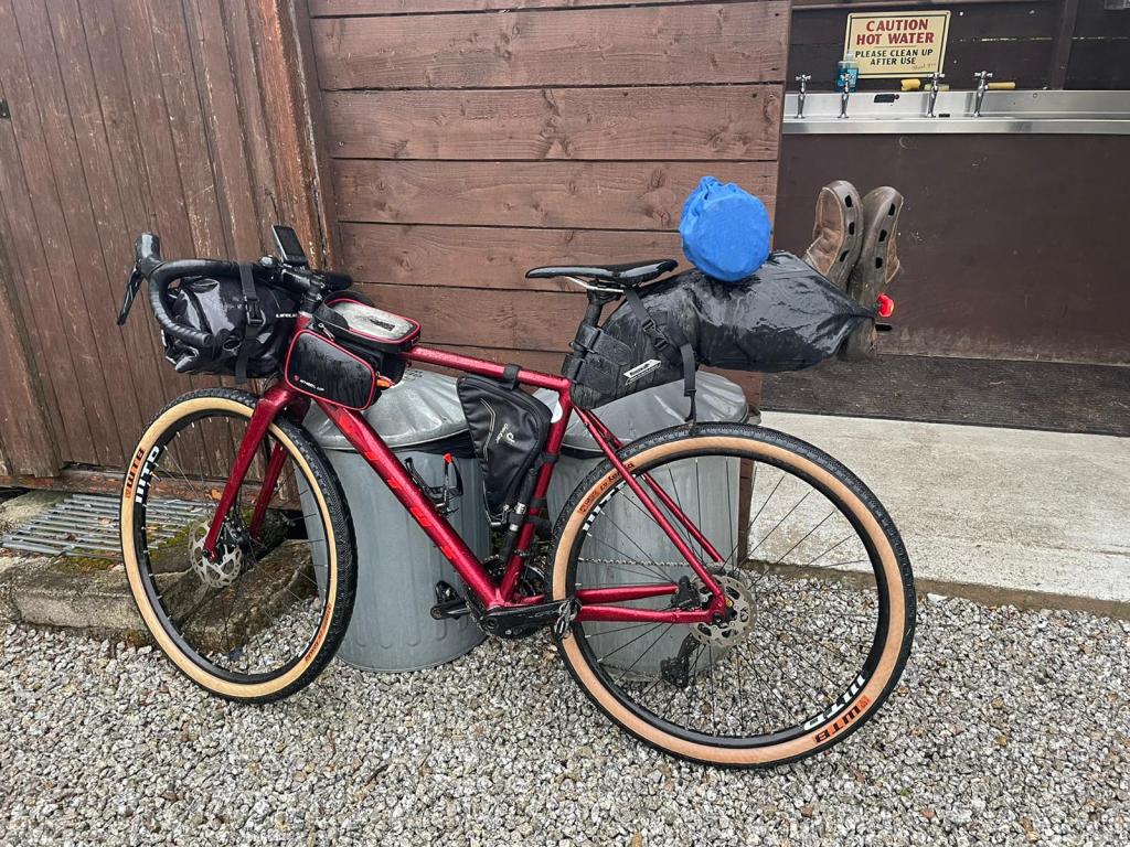 Within 2 miles we were absolutely drenched. Until day 4 the weather had been perfect, warm, dry and no direct sunshine. Day 4 decided that we needed to really experience bikepacking. By the end of the first hill I was wetter than an otters pocket and questioning my life choices. Still, 45 minutes to breakfast.